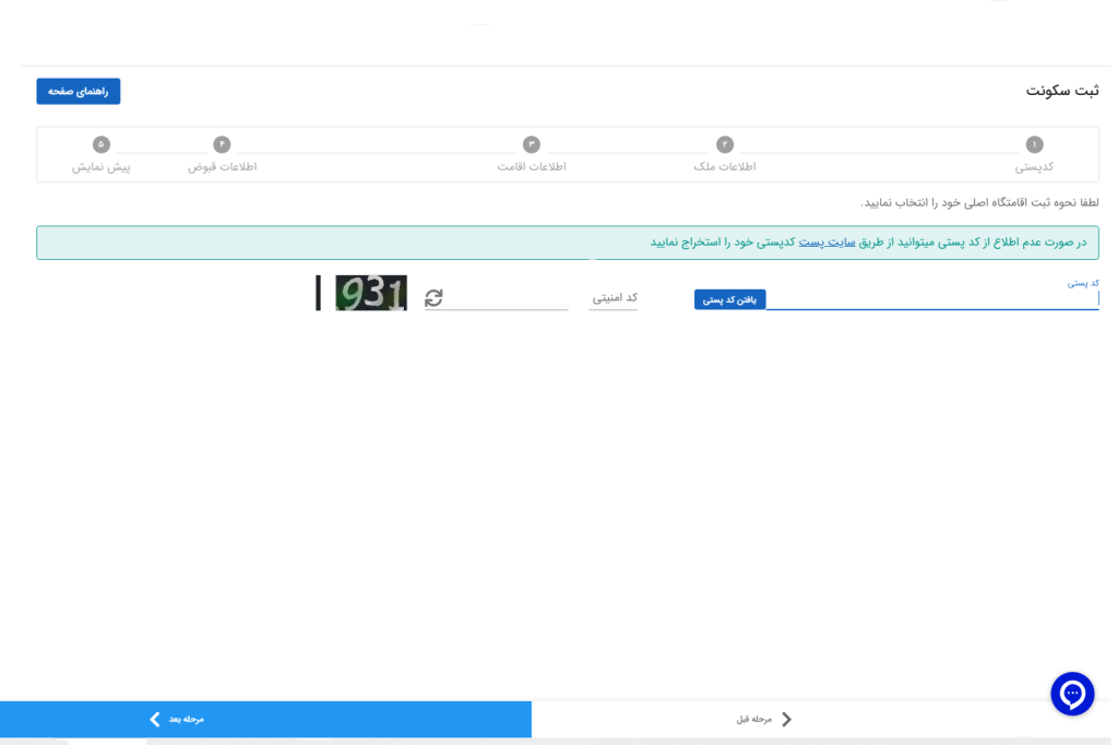 - وارد کردن کد پستی