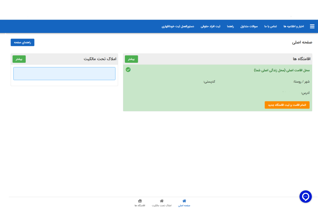 ثبت اقامتگاه با اطلاعات مالکیت (ویژه مالکان)