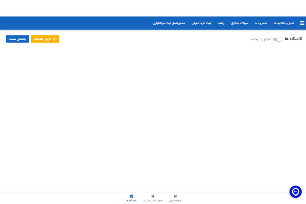 - سپس روی ثبت اقامتگاه کلیک کنید
