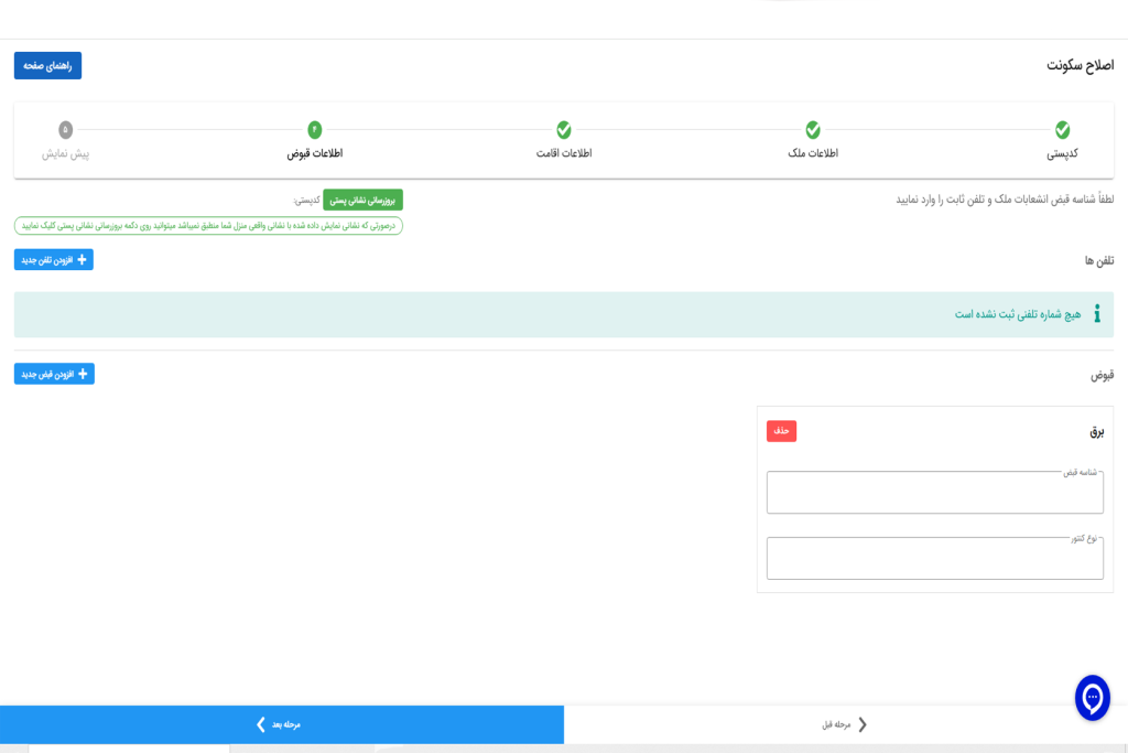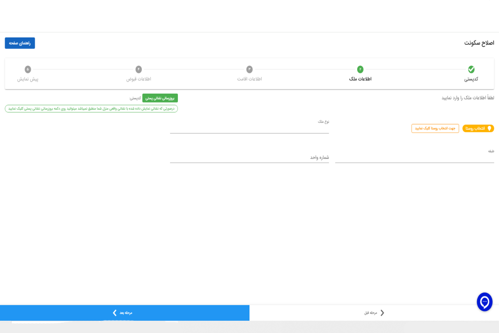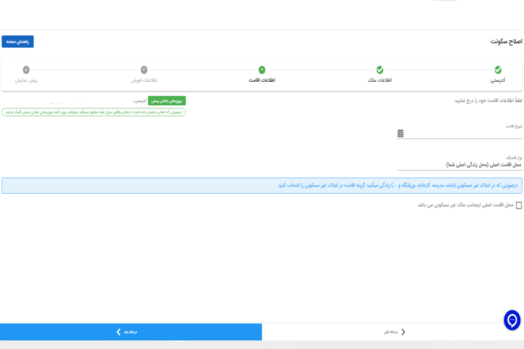 | ثبت اقامتگاه با اطلاعات مالکیت | ورود اطلاعات و مدارک سند | مخصوص مالکان |