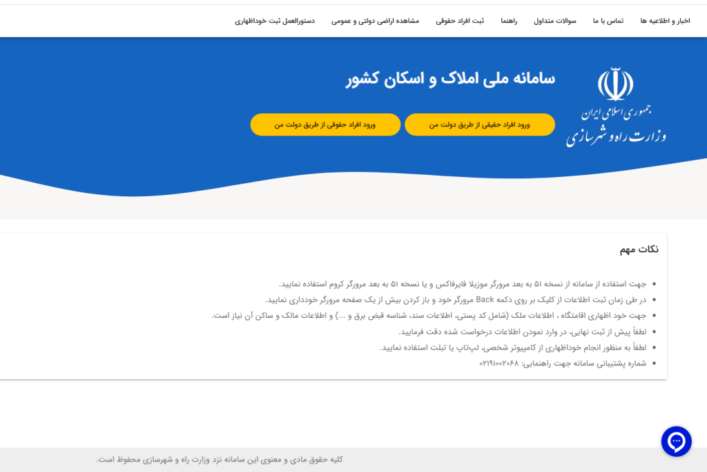نحوه ورود به سامانه املاک و اسکان